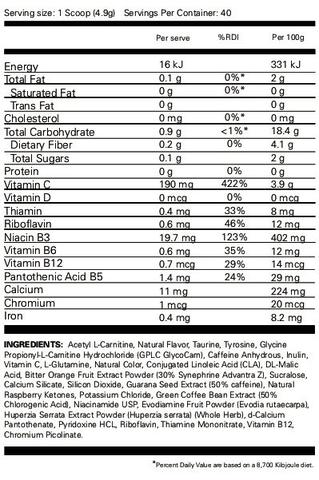Enjoy accelerated fat loss, while simultaneously enhancing your overall cognitive function and immune system thanks to OxyShred Hardcore’s elixir or hard-hitting ingredients. Jam-packed with Vitamin C, Vitamin D, Thiamin, Riboflavin, Niacin B3, Vitamin B6, Vitamin B12, Pantothenic Acid B5, Calcium, Chromium and Iron, you can expect an all-round exceptional fat burning, mood enhancing, energy accelerating, and immune boosting formula.