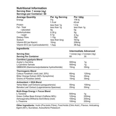 Carnitine Lipolysis Blend - with two different forms of carnitine available, at a total dose of 2g, the Carnitine in Fireball will help transport and free up fatty acids to be burnt as fuel - preserving muscle tissue and enhancing the efficiency of fat metabolization. The GBBGO® present in the blend will increase your bodies carnitine production, and will minimise the conversion of bioavailable carnitine into GBB.