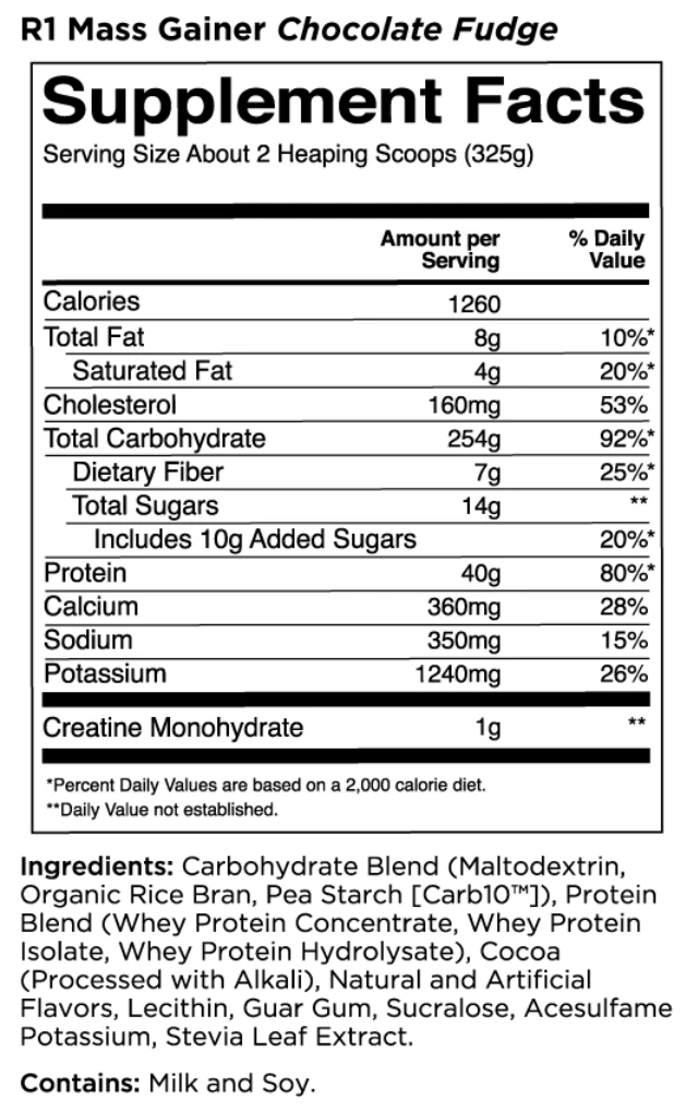 When it comes to achieving your body composition goals, relying solely on your own efforts may only take you so far in terms of progress. Without proper supplementation, your dedicated workouts may not yield the desired results. Enter R1 Mass Gainer by Rule 1 Proteins, an effective solution to help you add the necessary mass and achieve your body goals.