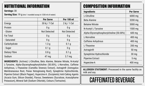 Directions for use: Mix 1 scoop in 800ml of chilled water. Consume 15-20 minutes before training. Do not consume powder or more than 1 serving per day. Store in a cool, dry place below 30 degrees Celsius. Do not expose to excessive heat or moisture.