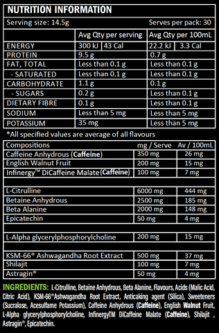As athletes we care about what we fuel our body with and know that you do as well which is why Kamikaze is a 100% transparently labelled Pre-workout. So you can see exactly what's inside every single serve.